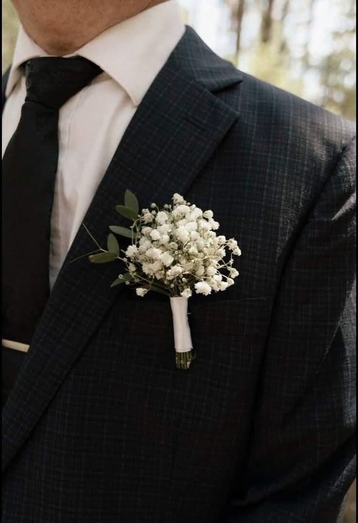 Portée près du cœur, la boutonnière du marié est un clin d’œil au bouquet de la mariée et au lien qui les unit. Un petit détail fleuri, mais une grande signification.